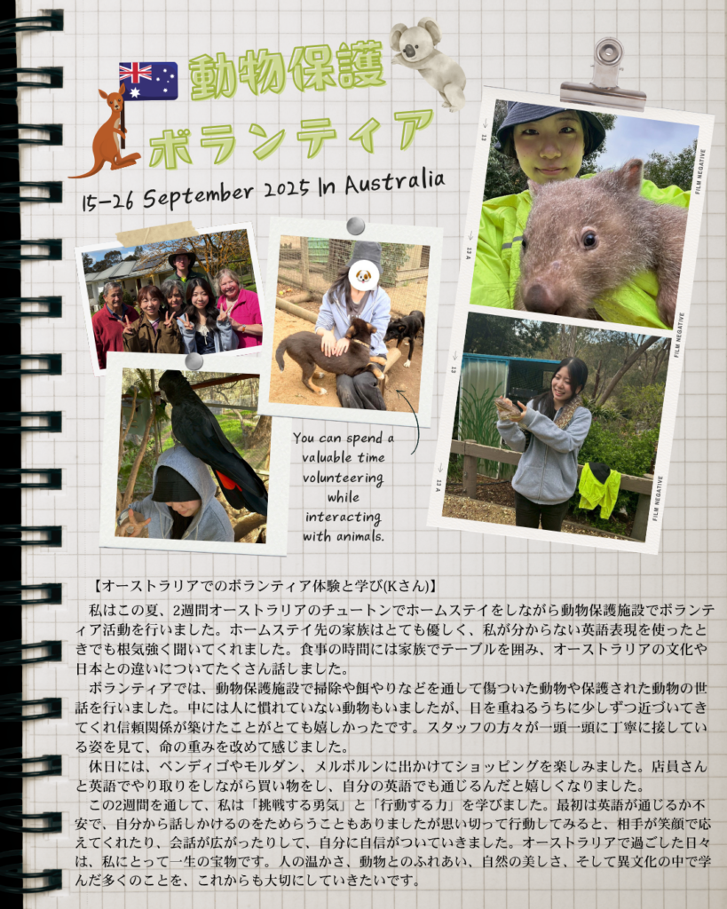 今回は、9月に2週間オーストラリアで動物保護プログラムに参加をした学生様のレビューを紹介いたします♪動物保護プログラムに興味のあるかたはぜひ参考にしてみてくださいね🥳