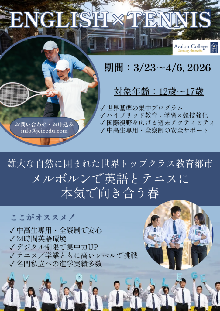 この度、12〜17歳の中高生を対象とした英語 × テニス × 全寮制 国際教育プログラムを実施いたします☺︎