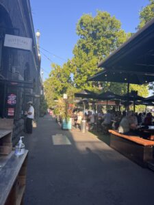 都市部のレストランは屋外の席で多くの人が食べています。この熱気が大好きです。